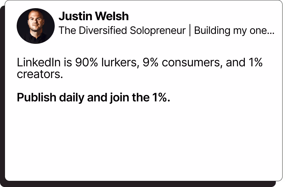 This experience got me thinking about the mechanics behind persuasive copy and how word-class creators like Justin Welsh leverage it to turn somebody passively scrolling into a loyal fan.