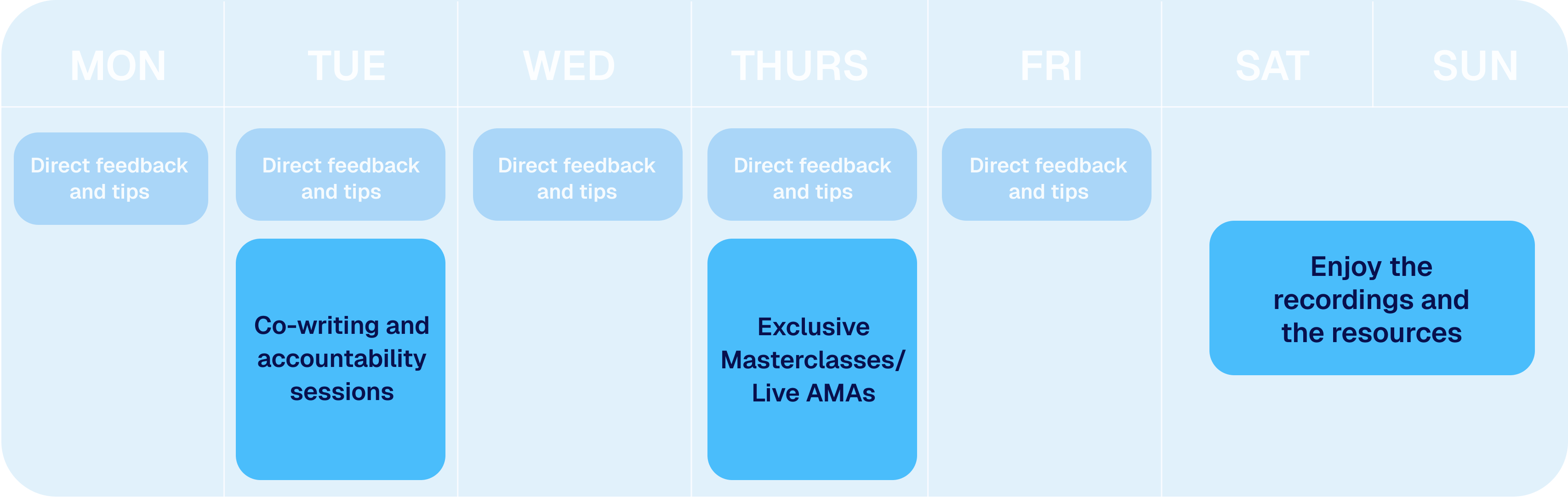We recommend setting aside 3-5 hours a week. That’s enough to go through the material, apply the exercises, and create your first pieces of content. The beauty of the system is that it saves you time in the long run, instead of spending endless hours second-guessing yourself, you’ll know exactly what to do.