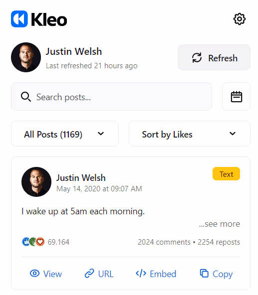 Checking Justin Welshās profile with Kleo