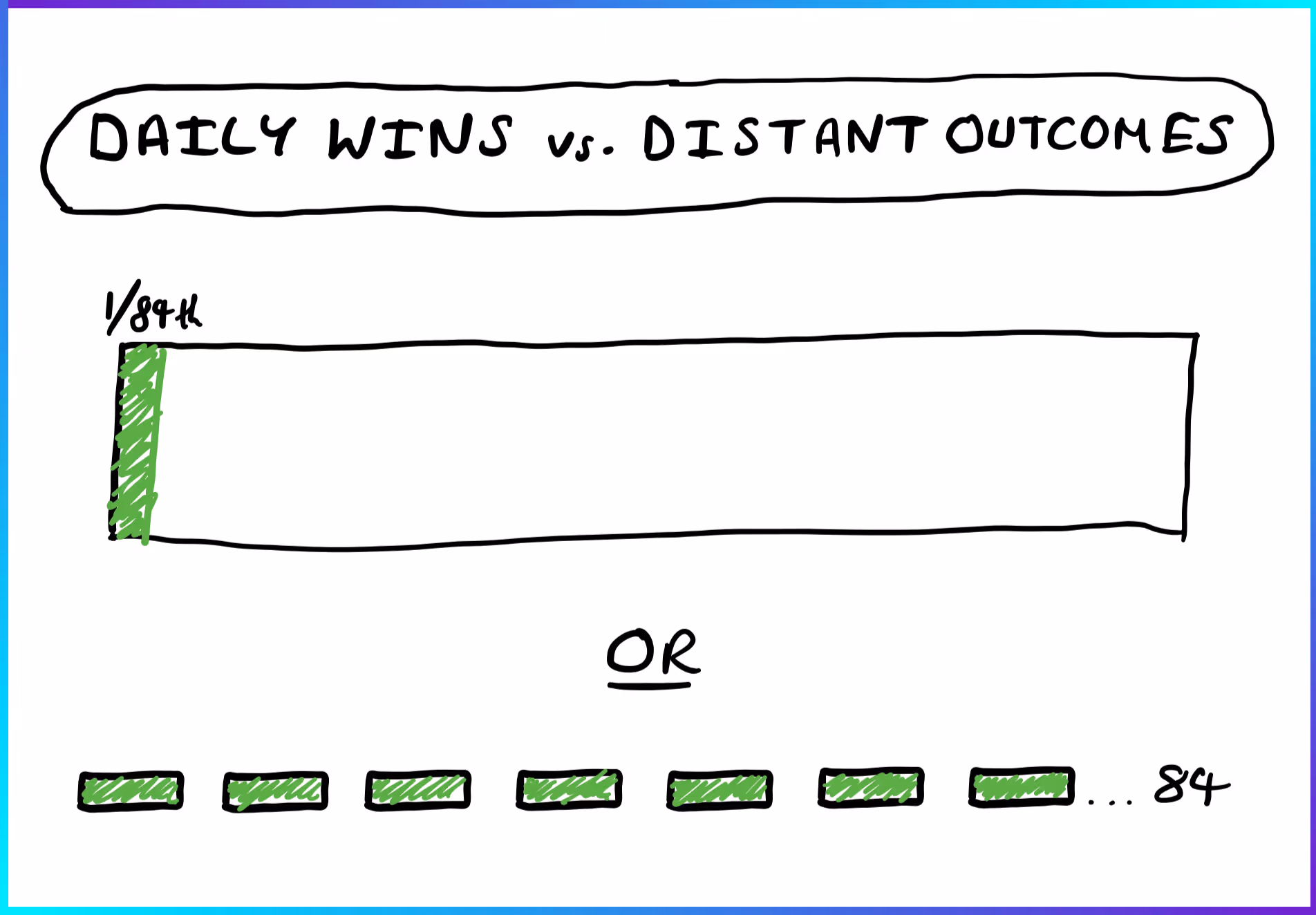 If we break down this 12-week target into 84 individual days, we can win every single day 100% and complete 84x days of progress.